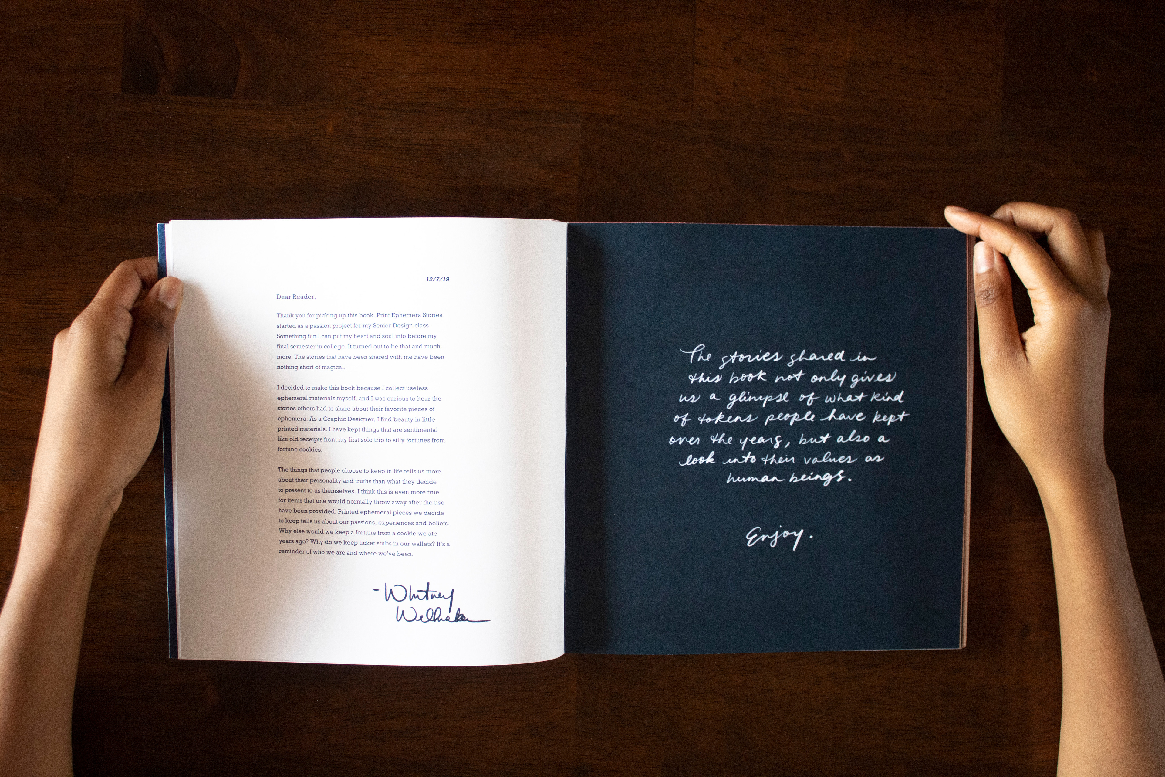 Print Ephemera Stories is a collection of stories about everyday people’s favorite pieces of ephemera. Ephemera are items designed to be useful or important for only a short period of time like pamphlets, notices, and tickets. Some people collect printed ephemera to learn more about the past. Others collect everyday printed materials because it has some kind of sentimental value. It reminds us of a time in our life, of a person, or of experiences we’ve cherished. These print materials hold stories that are close to us and are worth sharing.